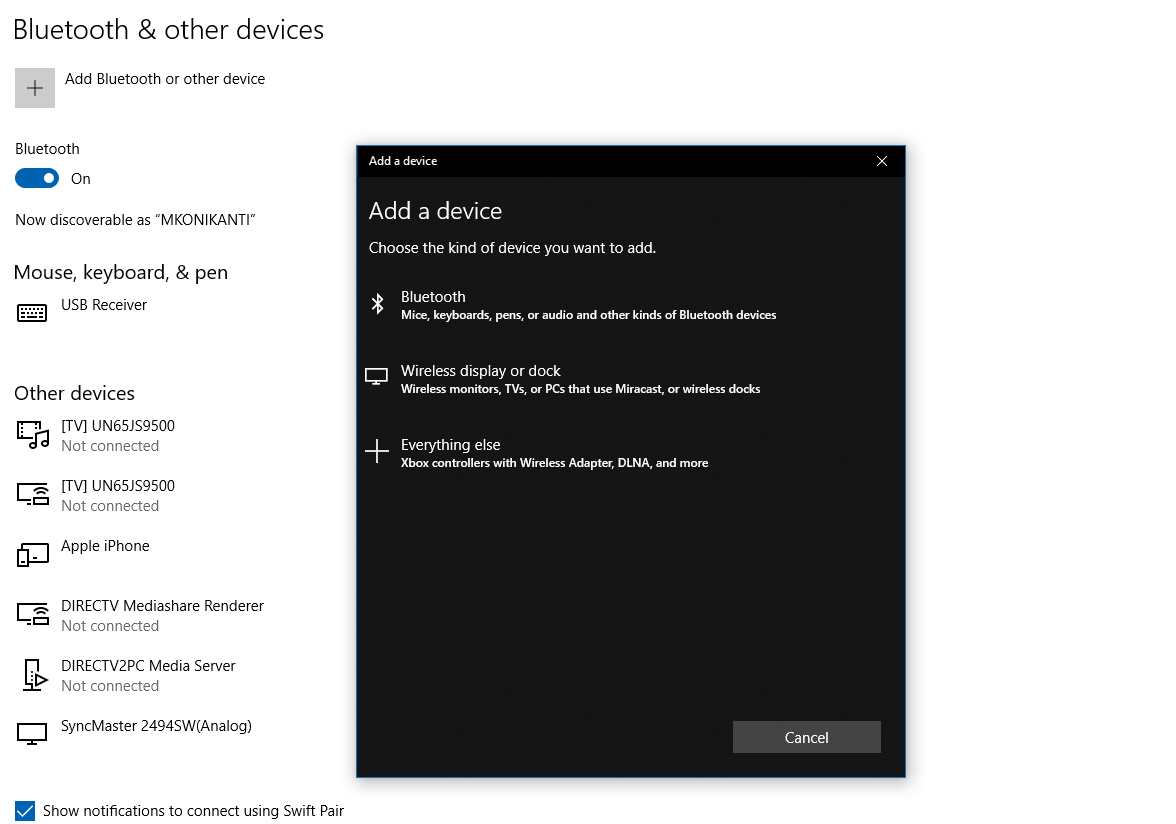 In Bluetooth & other devices screen, select Add Bluetooth or other device button