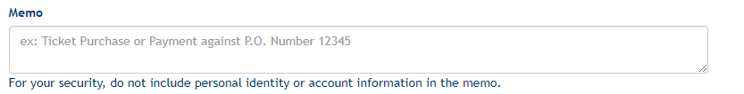 A Memo field displays that will allow the user to enter any additional information that they would like to accompany for their payment.